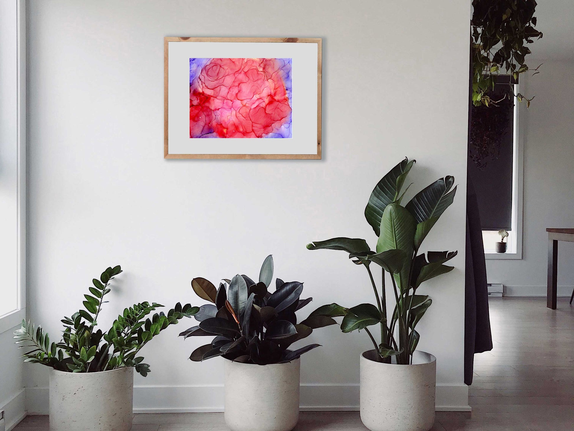 Ignite warmth and passion with Heart of Fire, an original alcohol ink painting radiating reds, yellows, and purples. Its bold, glowing center brings energy and vibrancy to any room—perfect for creating a space that inspires joy, creativity, and connection.