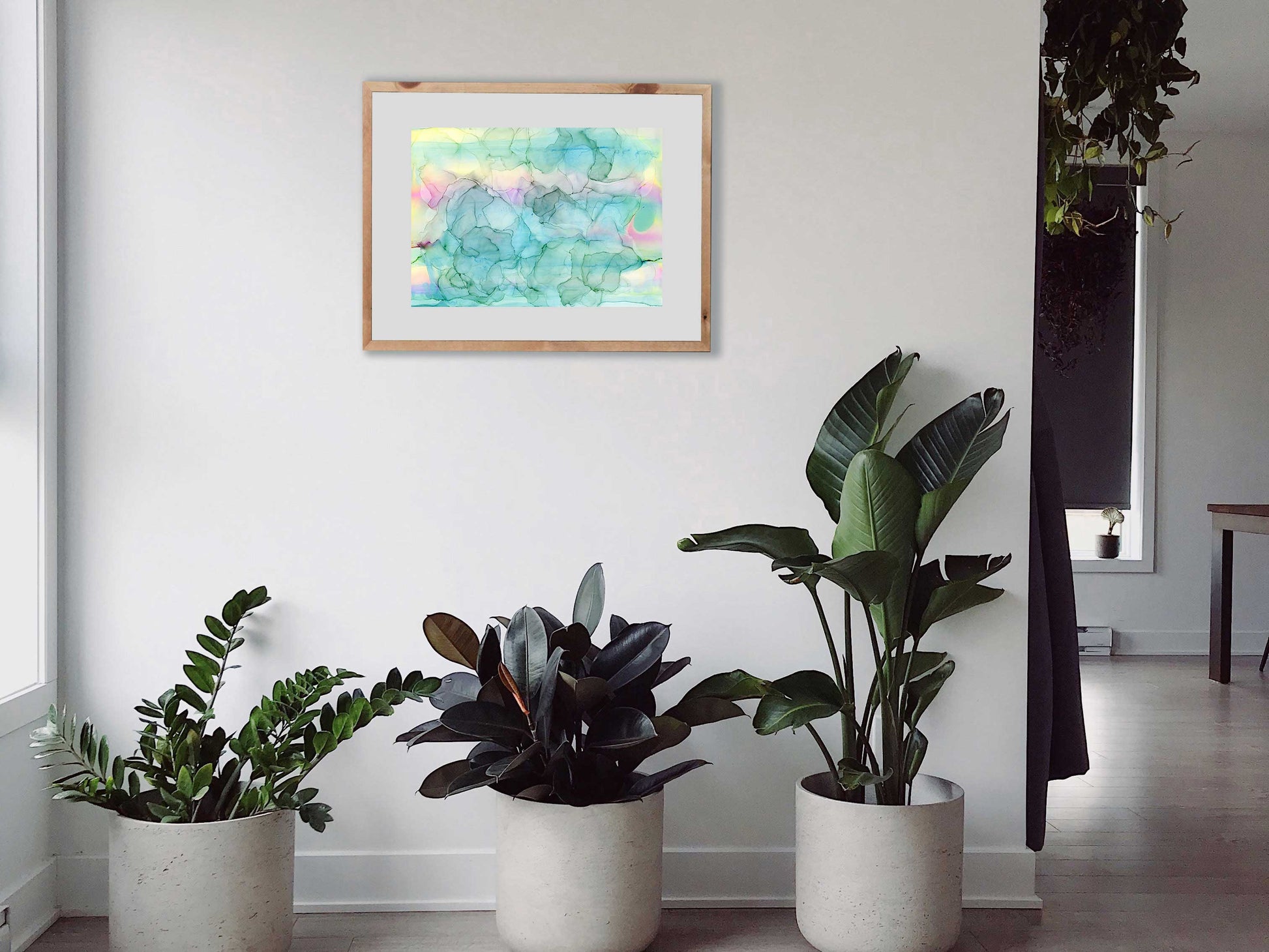 Gentle and uplifting, "Meadow Light" reflects the soft glow of morning as blossoms awaken under golden light. With pale yellows, blush pinks, and transparent green floral forms, this alcohol ink painting invites serenity and renewal. Its calming palette makes it ideal for bedrooms, nurseries, or meditation spaces, offering a peaceful reminder of nature’s quiet beauty. "Meadow Light" enhances your environment with grace and optimism—perfect for welcoming tranquility into daily life.